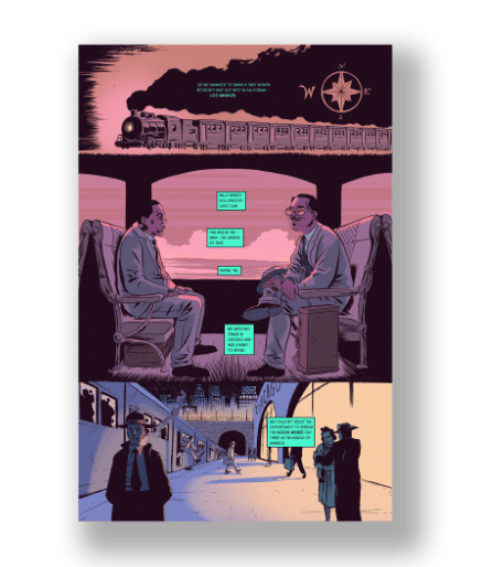 The graphic novel explores Bird’s relationship with the characters and events he encountered during his time in L.A. including recording some of his signature songs with Dial Record founder Ross Russell, a brief but influential stay at the home of famed jazz photographer William Claxton, a party for the ages at the ranch home of artist Jirayr Zorthian, and others who found themselves in the orbit of the jazz genius. Named after Charlie Parker’s 1947 standard, Chasin’ the Bird adapts one of the sunnier, but darker chapters in the life of Bird, beautifully written and illustrated by Dave Chisholm.