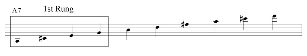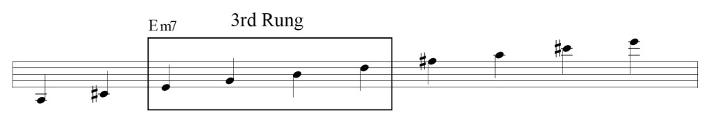 Bird never ran all the way up the ladder of thirds. I contend that he divided the ladder into seven four-note groups. Expanding my dubious metaphor, I will call these four-note groups “rungs.”