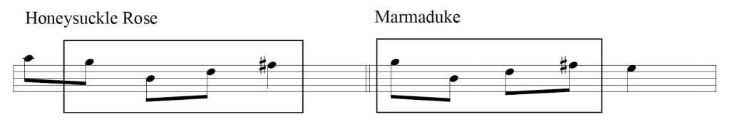 The “Marmaduke” melody is in part a transfigured “Honeysuckle Rose.” Here are the first four bars, minus the pickup: