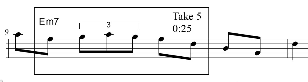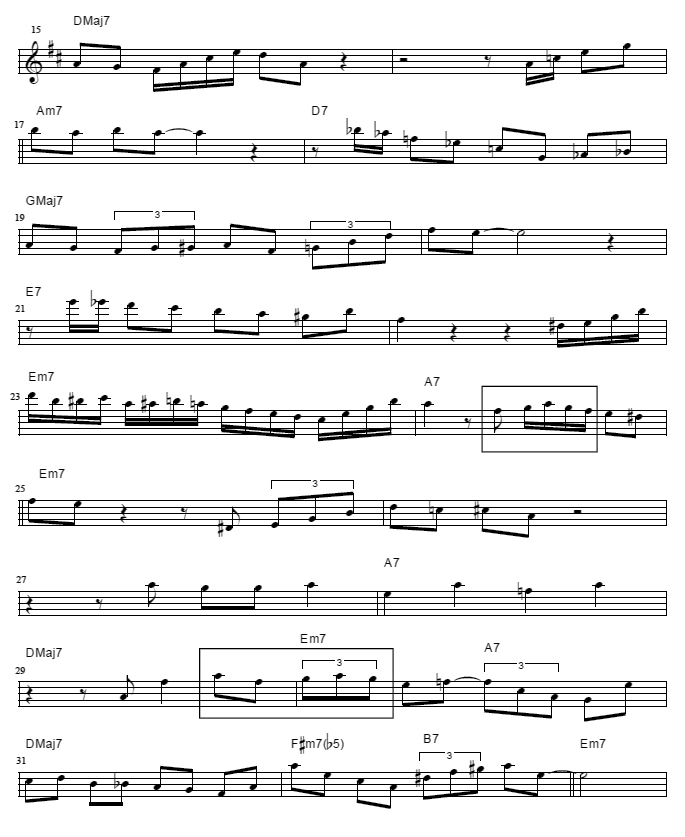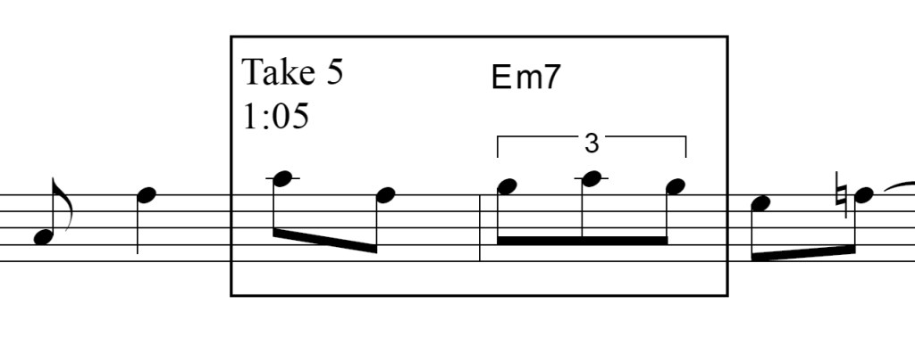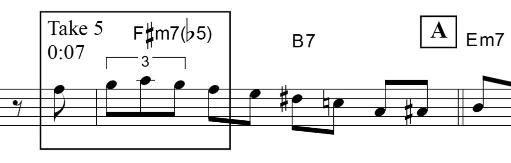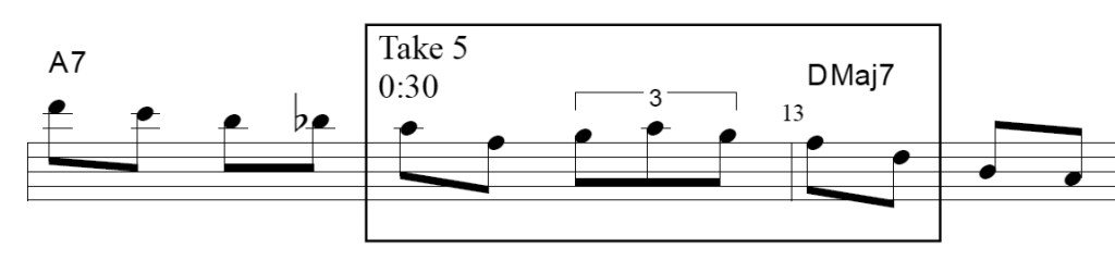 The D major ornament is deeply embedded in Bird’s muscle memory and surfaces five times in Take 5 (full solo below with D major ornament highlighted):