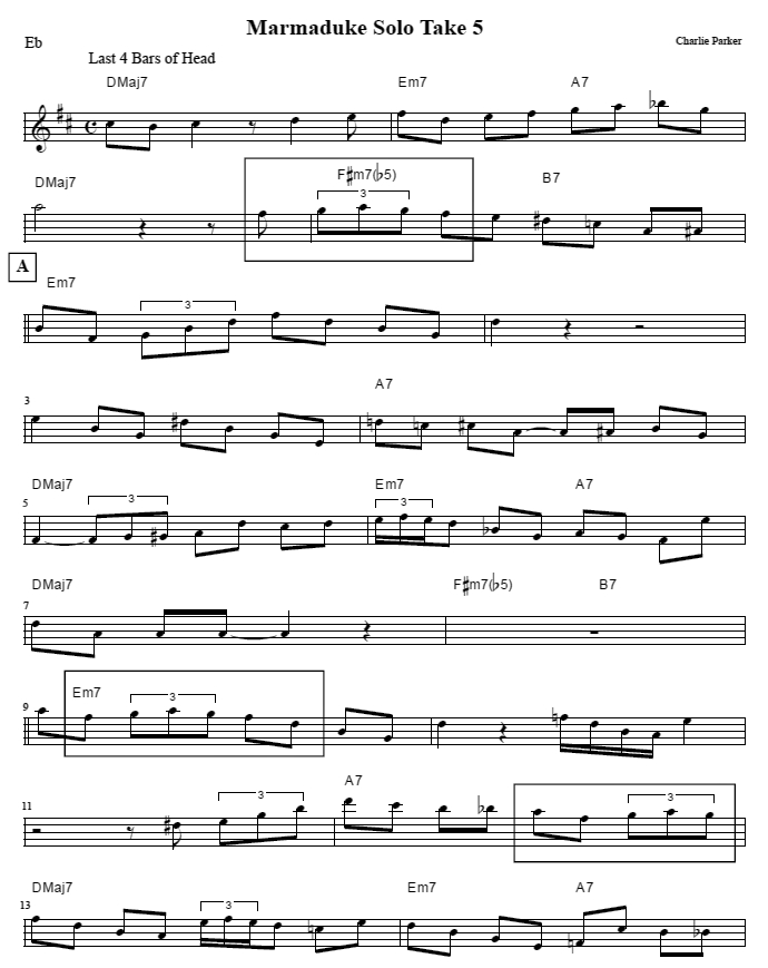 Here is Bird’s “Marmaduke” solo from Take 5, slowed down for clarity: