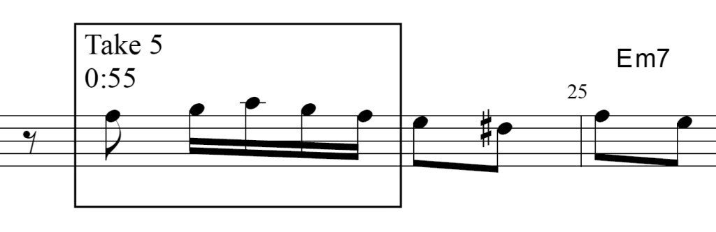 Bird recorded three complete takes of “Marmaduke,” takes 5, 9, and 12, each with equally good solos. Take 12, having the cleanest ensemble passages, became the master. I will be drawing examples from all three solos, referencing them by take number and timing, rather than by measure numbers.