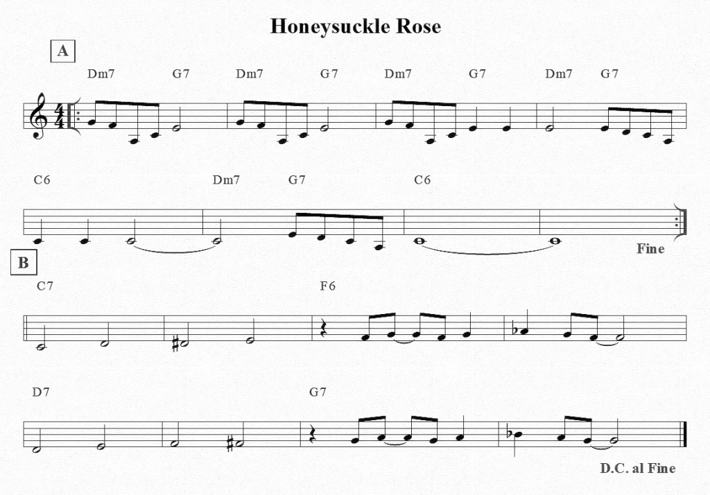 I’m using this page to present my hypothesis that Bird extrapolated much of his musical vocabulary from the first two songs he learned on saxophone, Honeysuckle Rose and Up A Lazy River (see Parkeology 005 & 006).