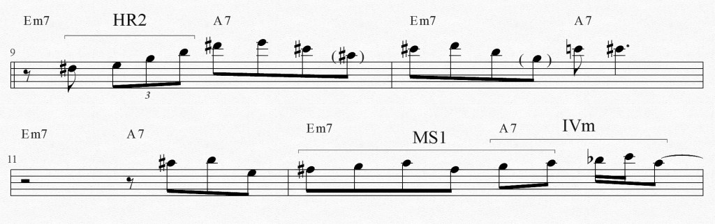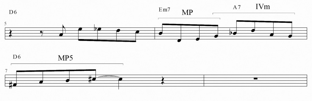 Bird’s IV minor archetypes [IVm] are short, descending four-note blocks that he often superimposes over V chords and major I chords.